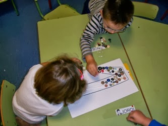 amb tamany gran per posar-los a les taules i amb cola hem apegat botons de diferents mides